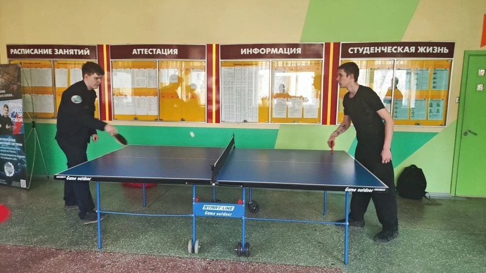 Вот у нас в техникуме есть те, кто знает рецепт идеальной перемены. Настольный теннис и живое общение! Каждую перемену ребята собираются в холле. Студенты сражаются в теннис, а вместе с ними играет сам преподаватель Николай Зорин! Смотрите, как круто: Глаза горят не от экрана, а от эмоций. Мозг переключается с лекций на активный отдых.